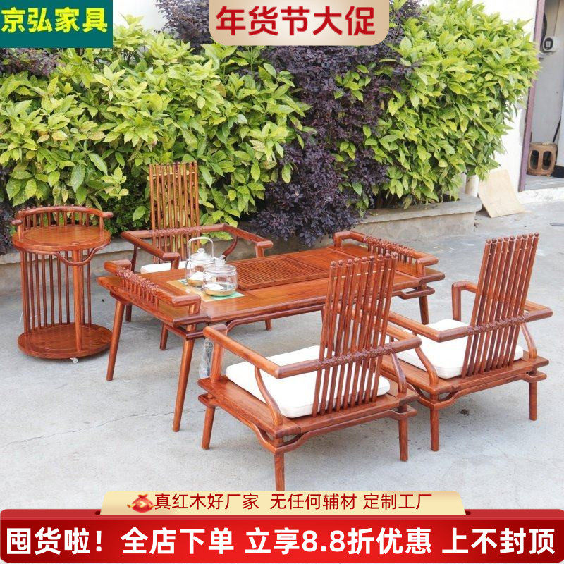 新中式功夫茶桌 花梨木金樽茶台茶椅 刺猬紫檀全实木红木京瓷家具