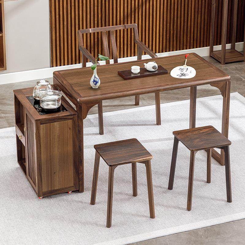 新中式禅意北美黑胡桃泡茶桌实木大板客厅办公室接待茶台茶椅组合