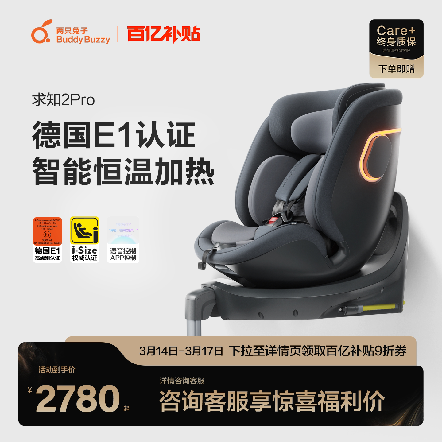 两只兔子求知2Pro安全座椅儿童提篮婴儿0-8岁宝宝语音通风汽车载