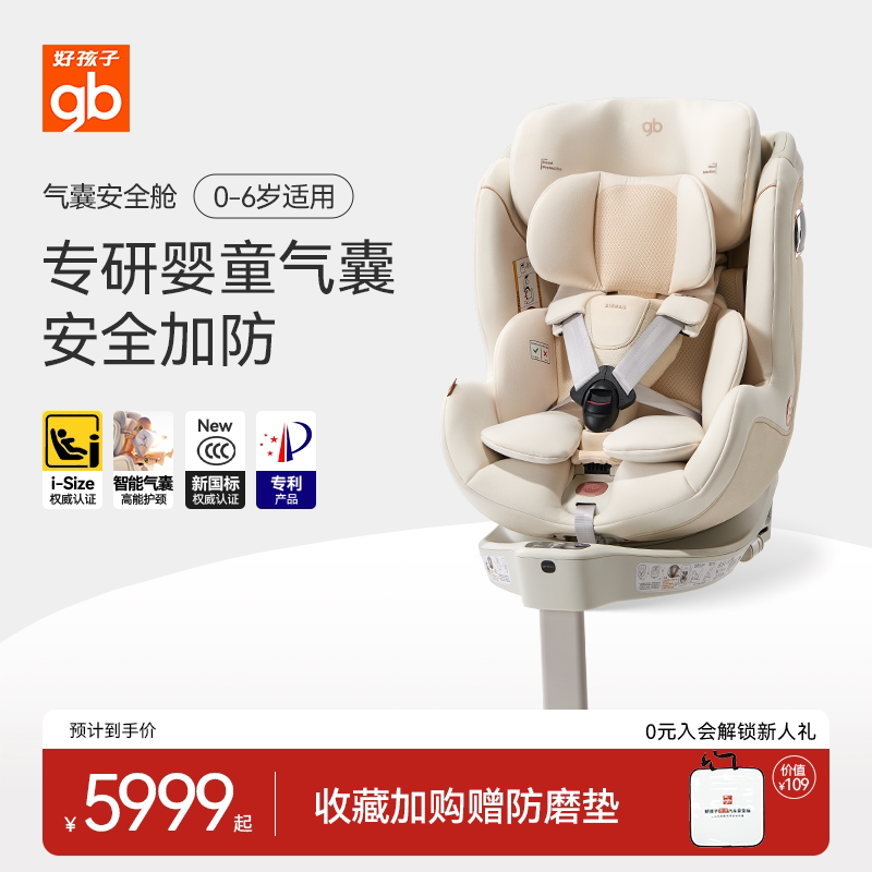 gb好孩子气囊高速安全舱新生婴儿安全座椅儿童360度汽车座椅0-6岁