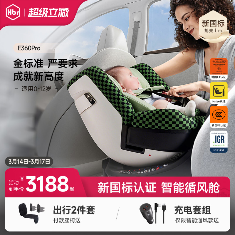 HBR虎贝尔安全座椅儿童E360pro智能循风舱婴儿宝宝0-12岁车载通风