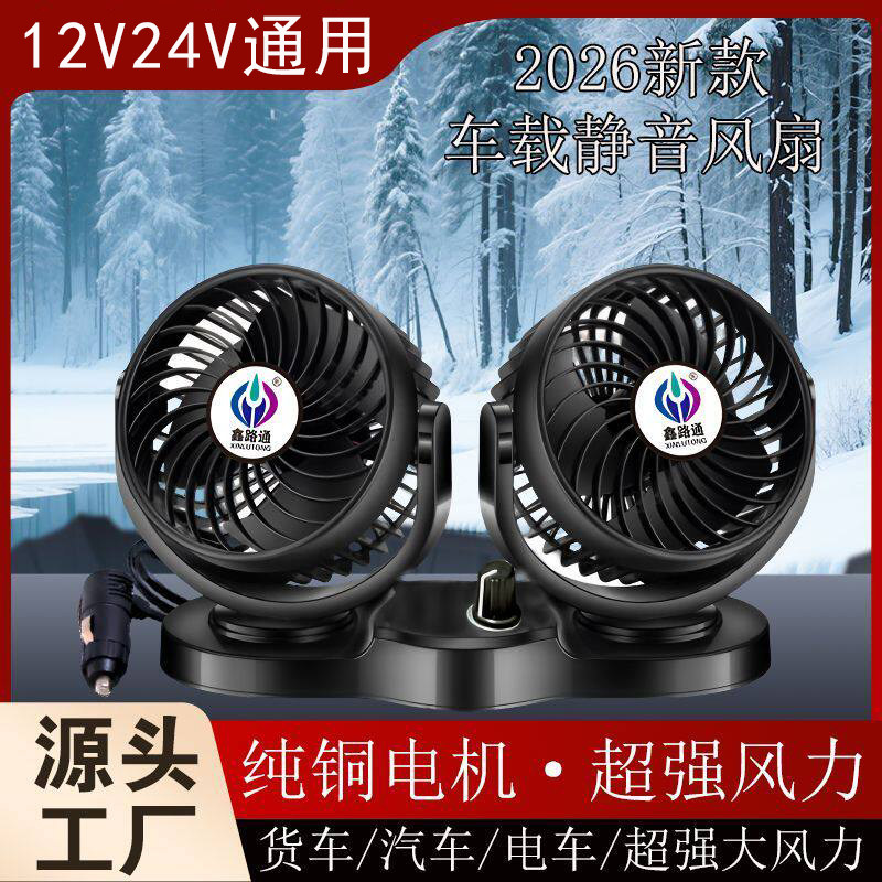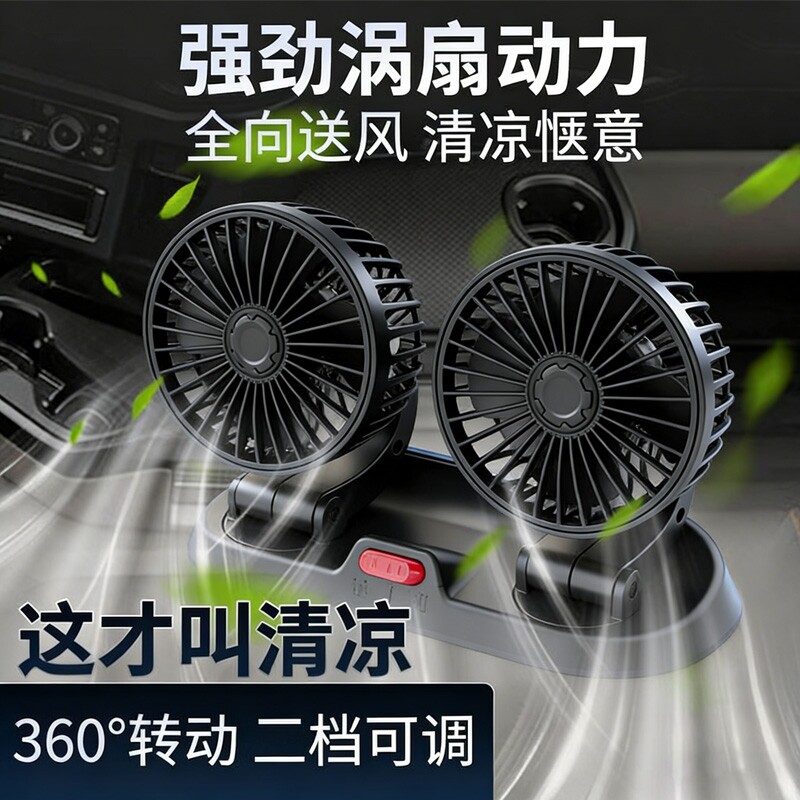 汽车风扇汽车双头12V24V面包车小卡车卡车制冷强力风力汽车电风扇