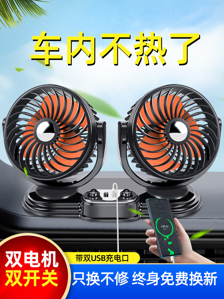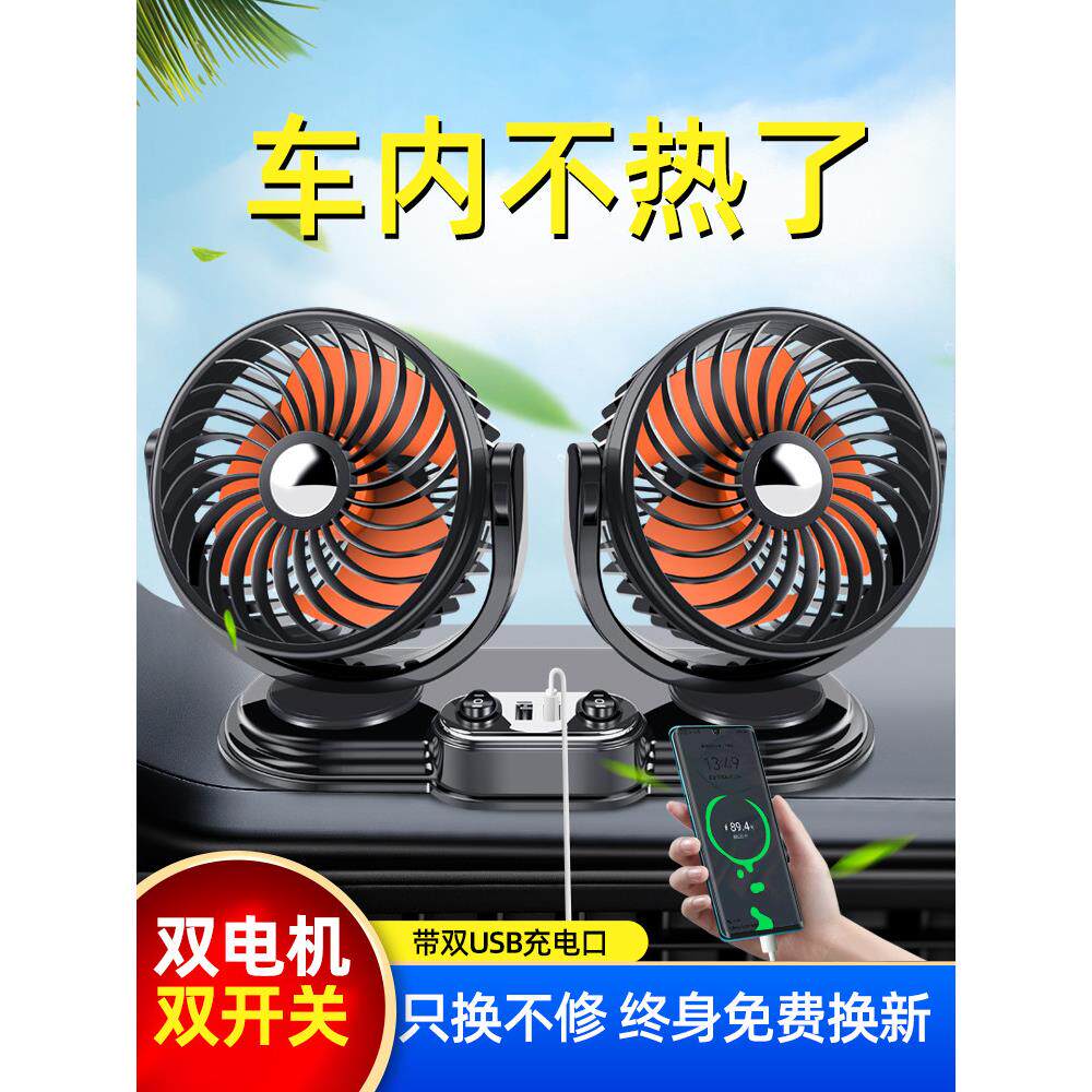 汽车风扇大型卡车24V 12V冷藏车双头汽车大功率汽车电风扇USB