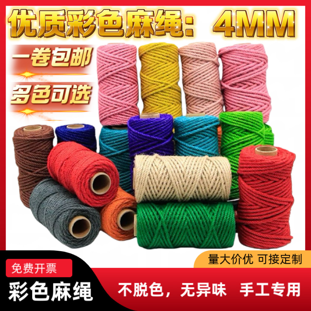 4.5mm彩色麻绳幼儿园手工天然麻线绳子diy配件装饰品缠花盆猫爬架