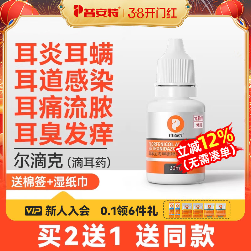 普安特耳螨猫用专用药洗耳液狗狗中耳炎耳朵清洁宠物滴耳液尔滴克
