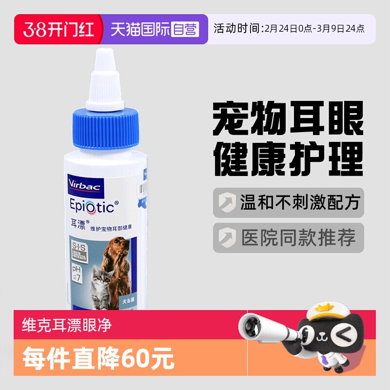 法国维克耳漂60ml宠物滴耳液猫狗通用耳螨耳炎专用抑菌洁耳洗耳液