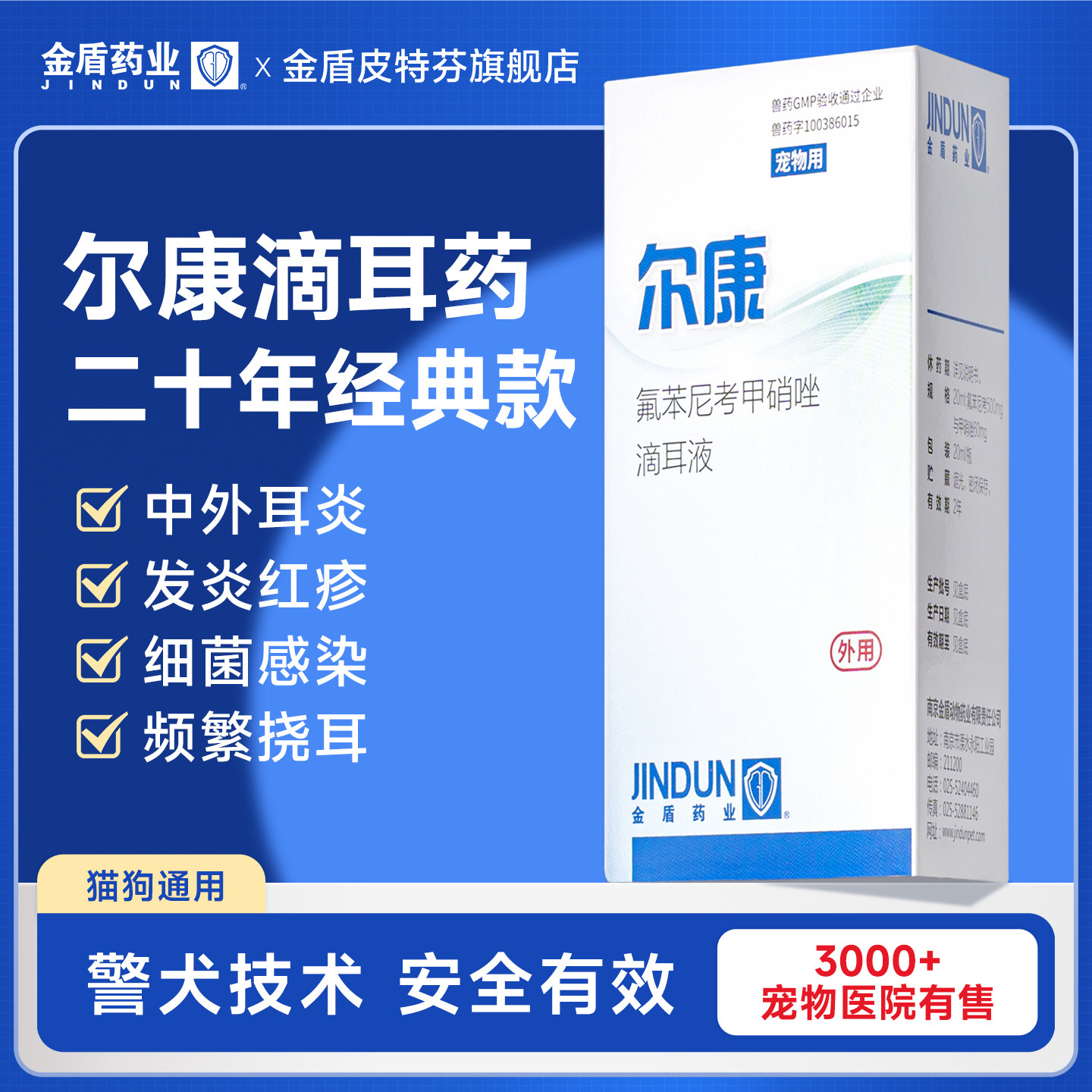 金盾尔康滴耳液耳康宠物滴耳液菌氟苯尼考甲硝唑滴耳液狗狗耳炎药