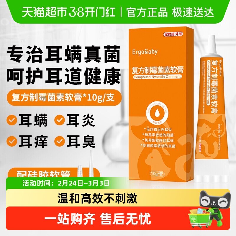 复方制霉菌素软膏猫咪耳螨专用药宠物滴耳液狗狗耳炎马拉色菌耳药