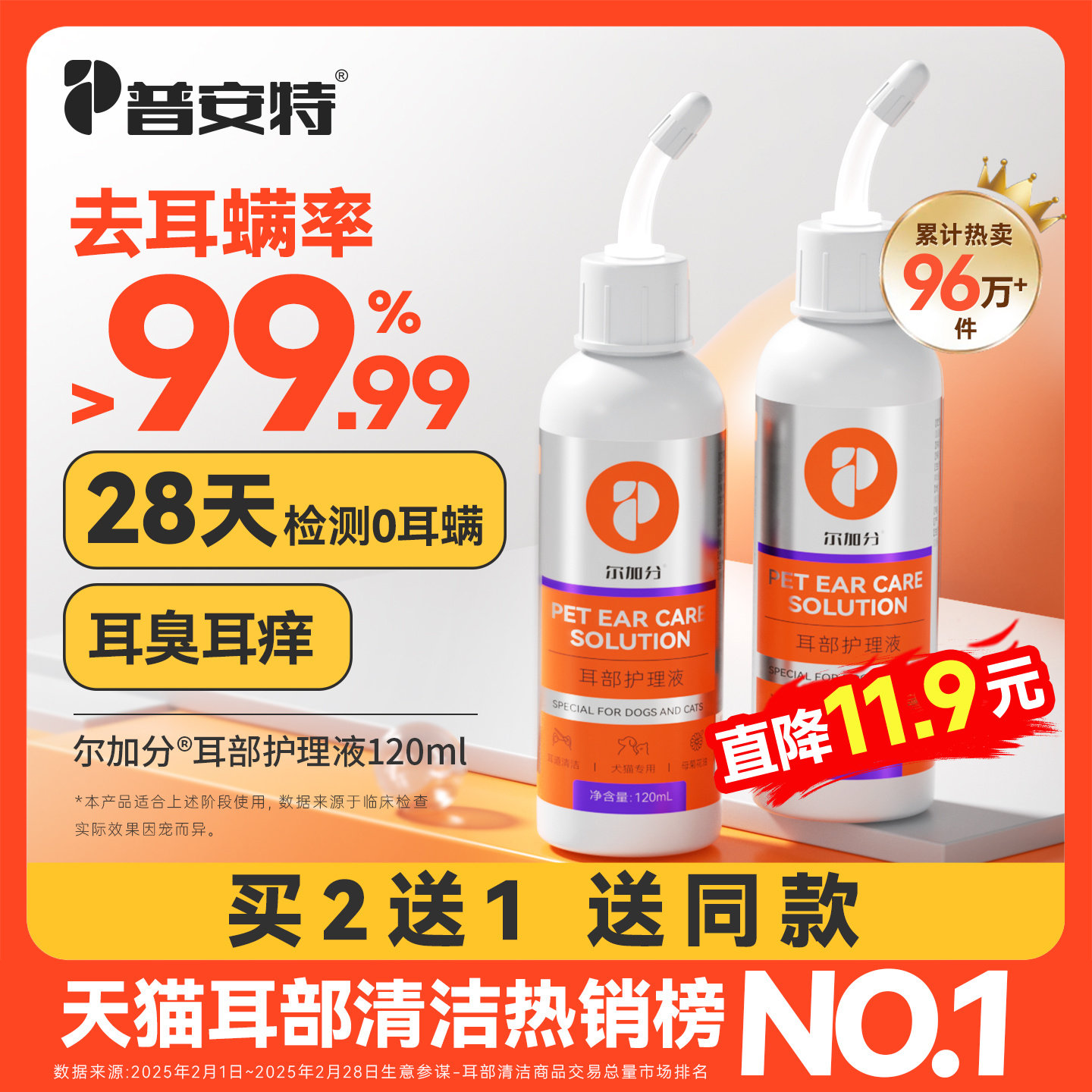 普安特猫咪洗耳液耳螨专用猫用狗用清洁耳炎耳臭宠物滴耳液尔加分