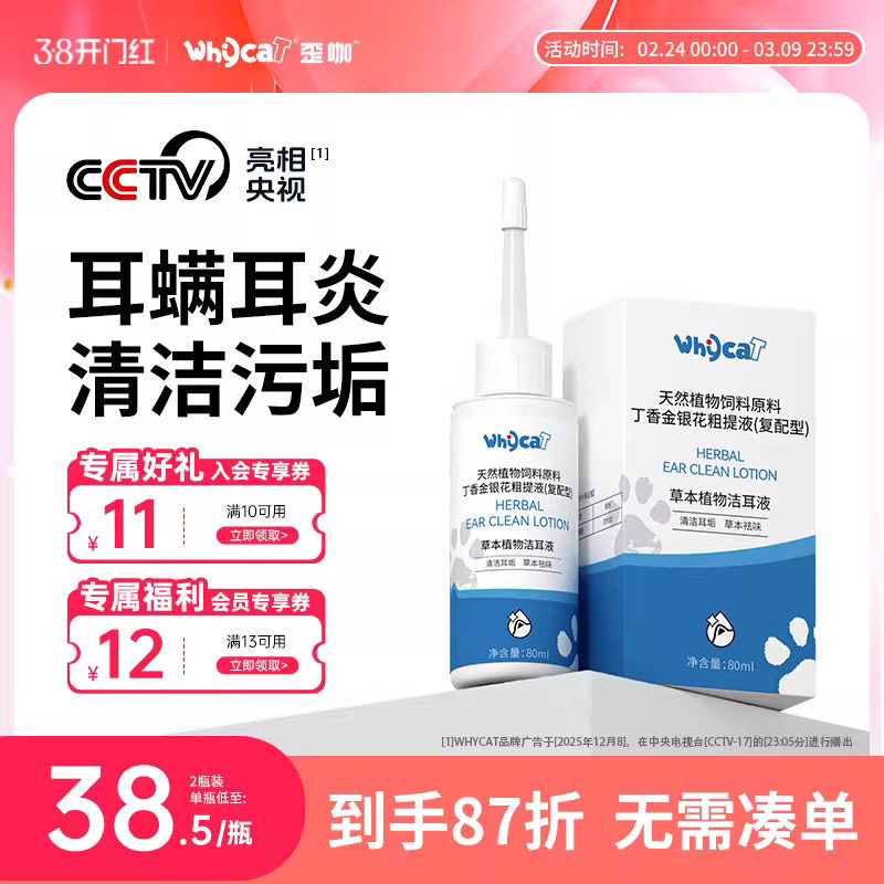 whycat歪咖猫咪洗耳液宠物滴耳液耳螨猫用中耳炎猫耳朵清洁狗狗