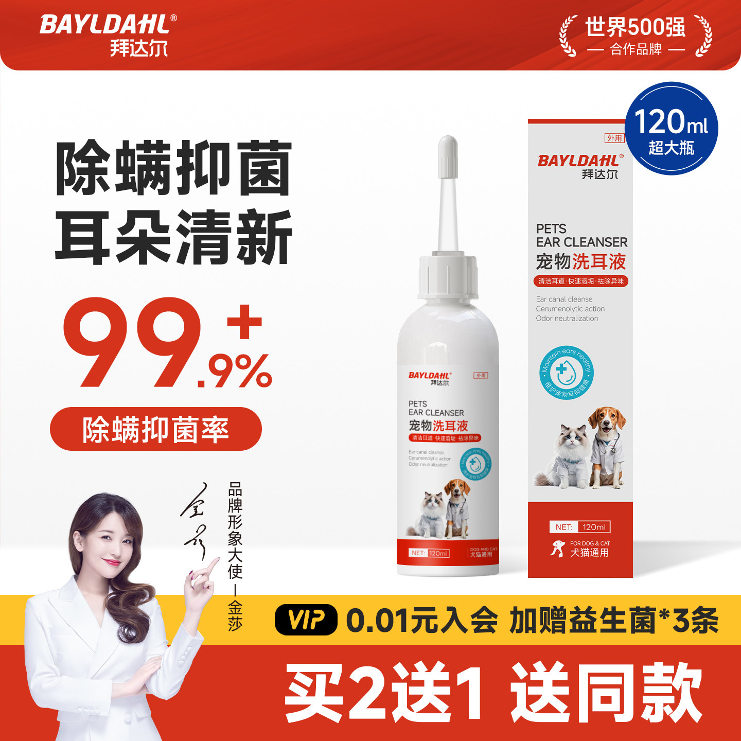 拜达尔猫咪洗耳液耳螨专用滴耳液猫用狗用耳朵清洁宠物狗狗洁耳液