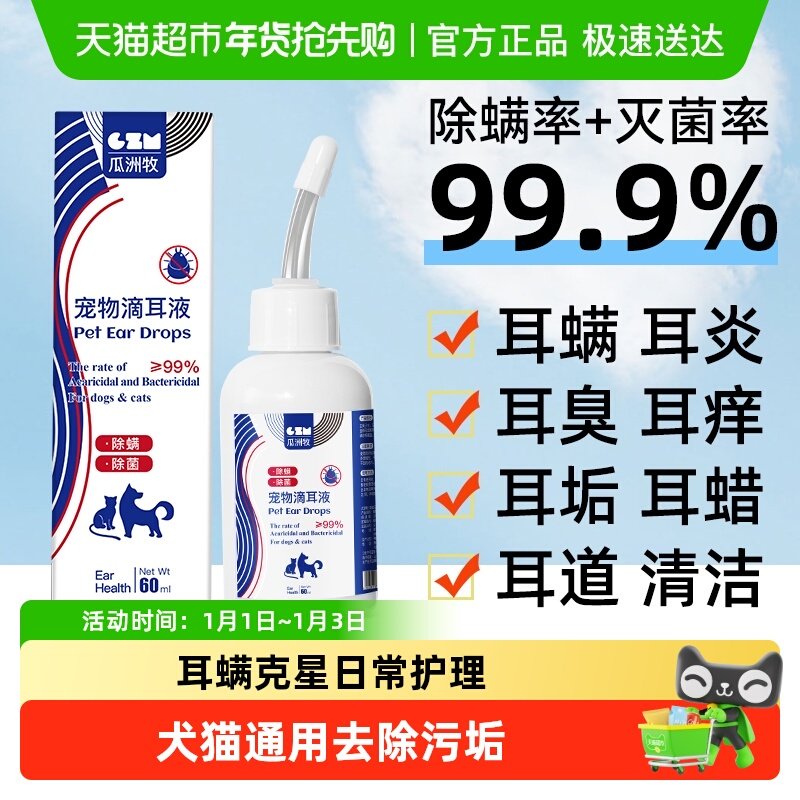 宠物滴耳液60ml猫用猫咪耳朵清洁用品狗狗金毛洗耳液除螨去臭专用