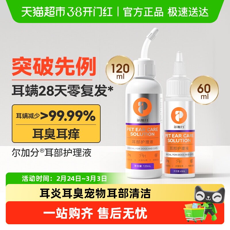 耳康耳肤灵猫耳螨药宠物滴耳液耳油耳漂尔康狗狗除耳螨狗用洗耳液