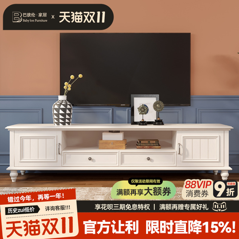 巴彼伦美式全实木电视柜乡村小户型白蜡木客厅茶几电视柜组合家具