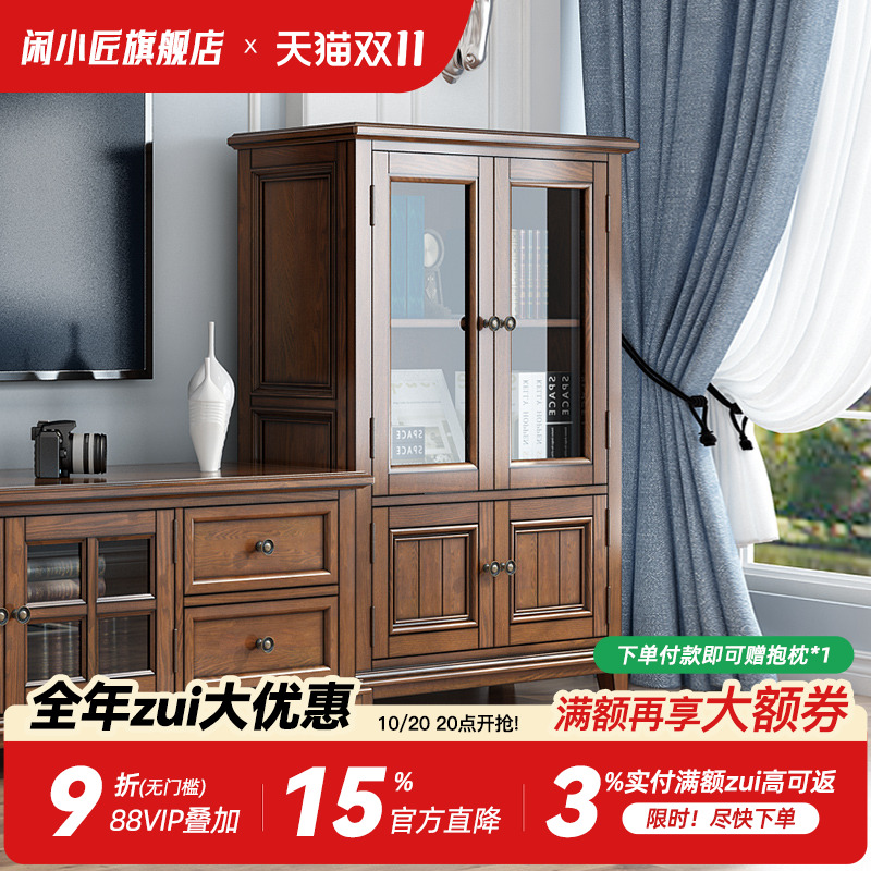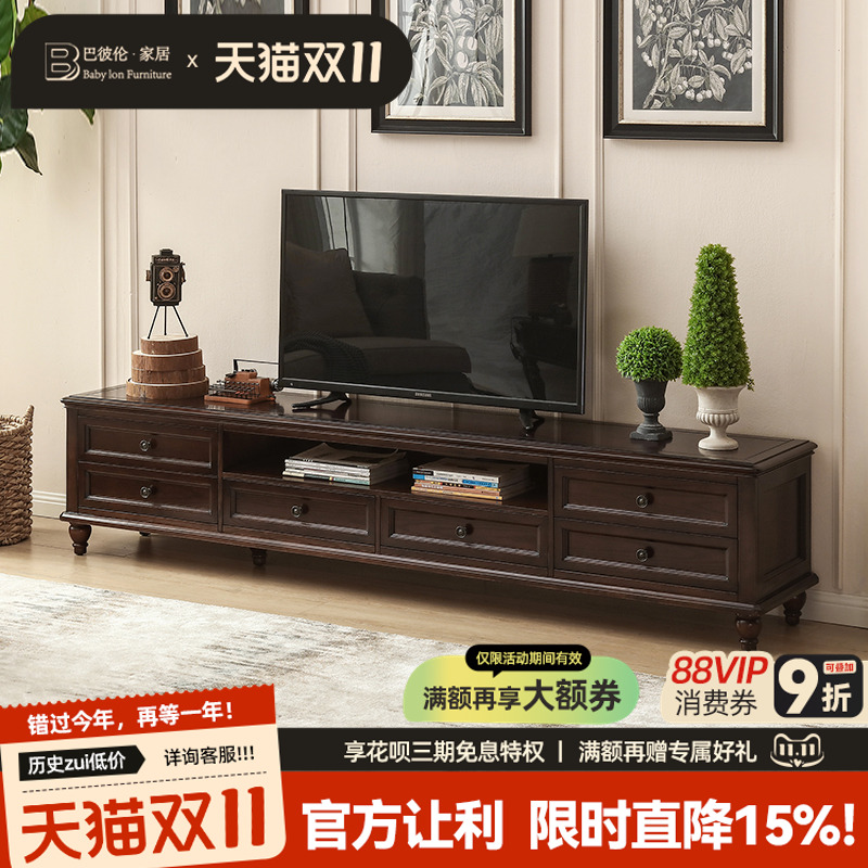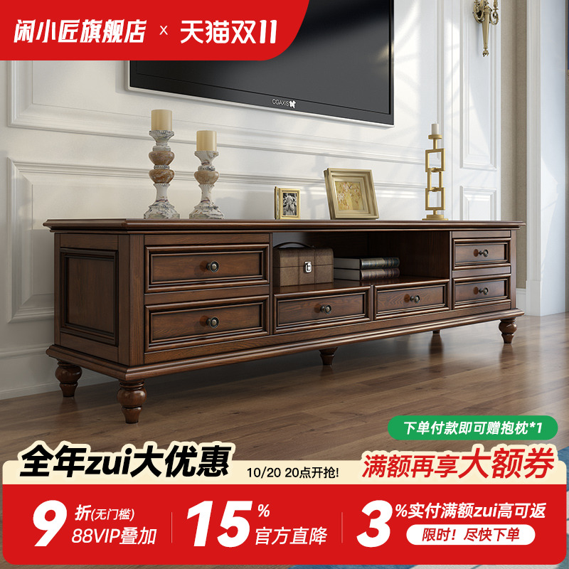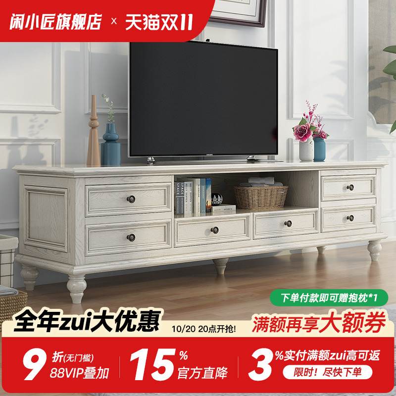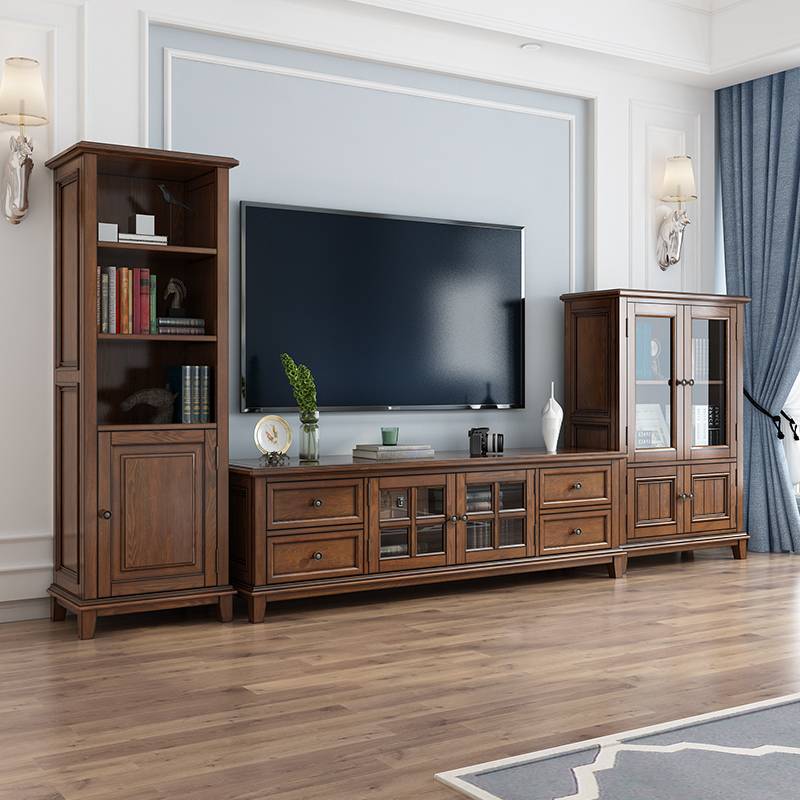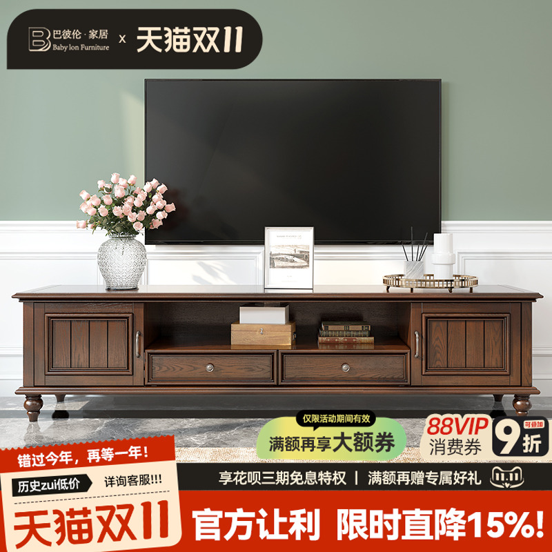 宜宝易森美式电视柜美式全实木电视柜茶几组合客厅白蜡木复古地柜