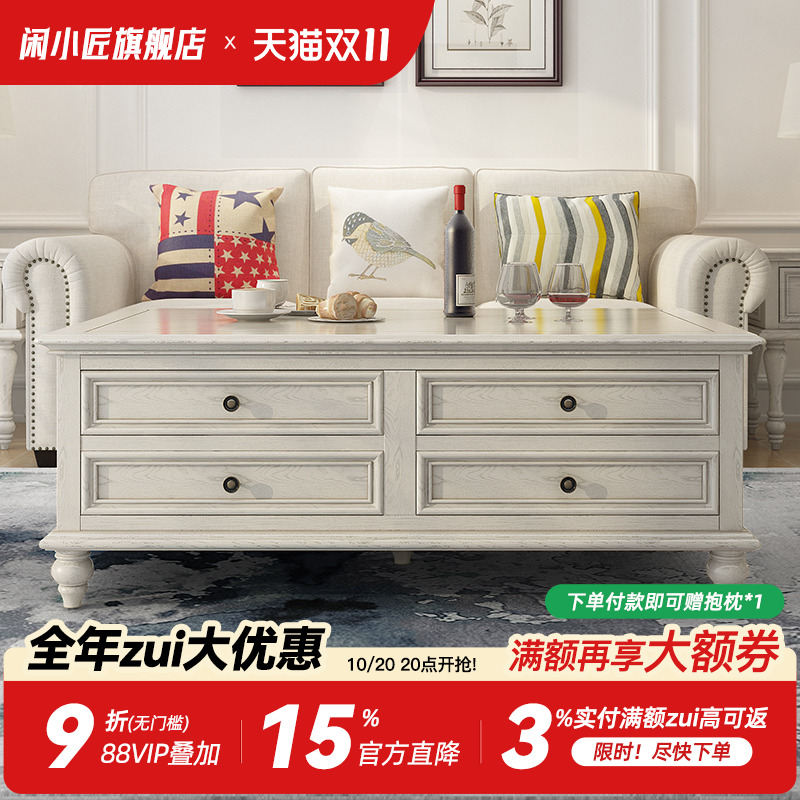 和年美家美式乡村复古全实木茶几客厅家用白蜡木小户型电视柜组合