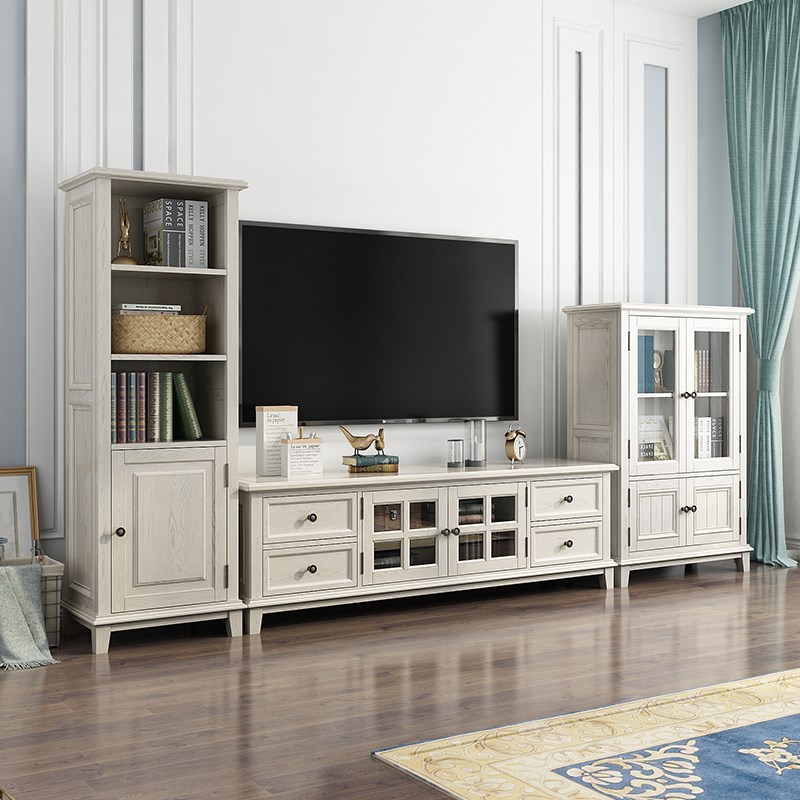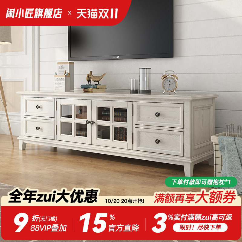美式实木电视柜现代简约客厅白蜡木影视柜小户型仿古白储物柜家具