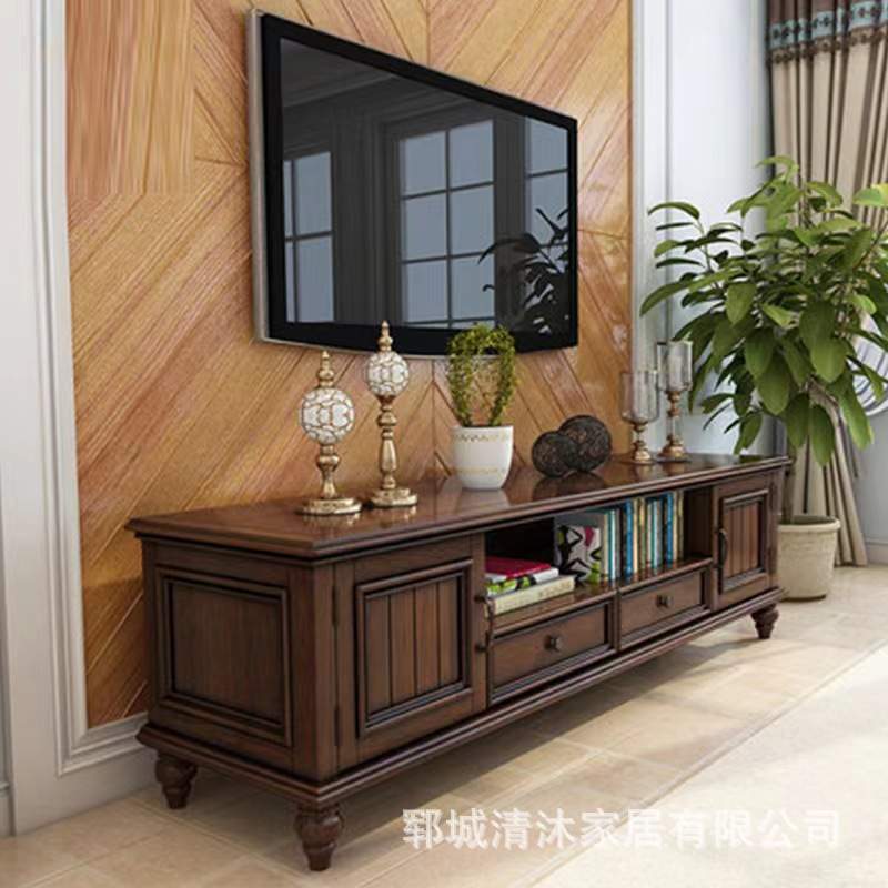 美式电视柜 白蜡木木美式乡村实木电视柜茶几组合黑胡桃 美式家具