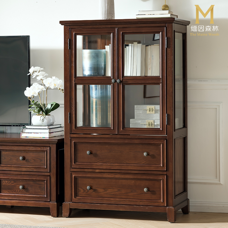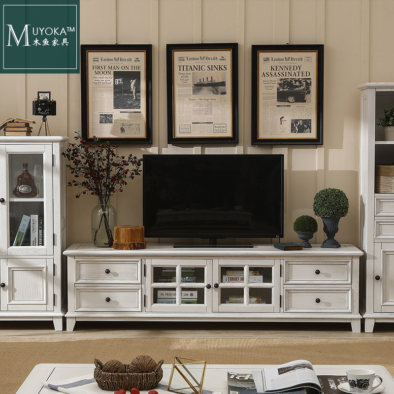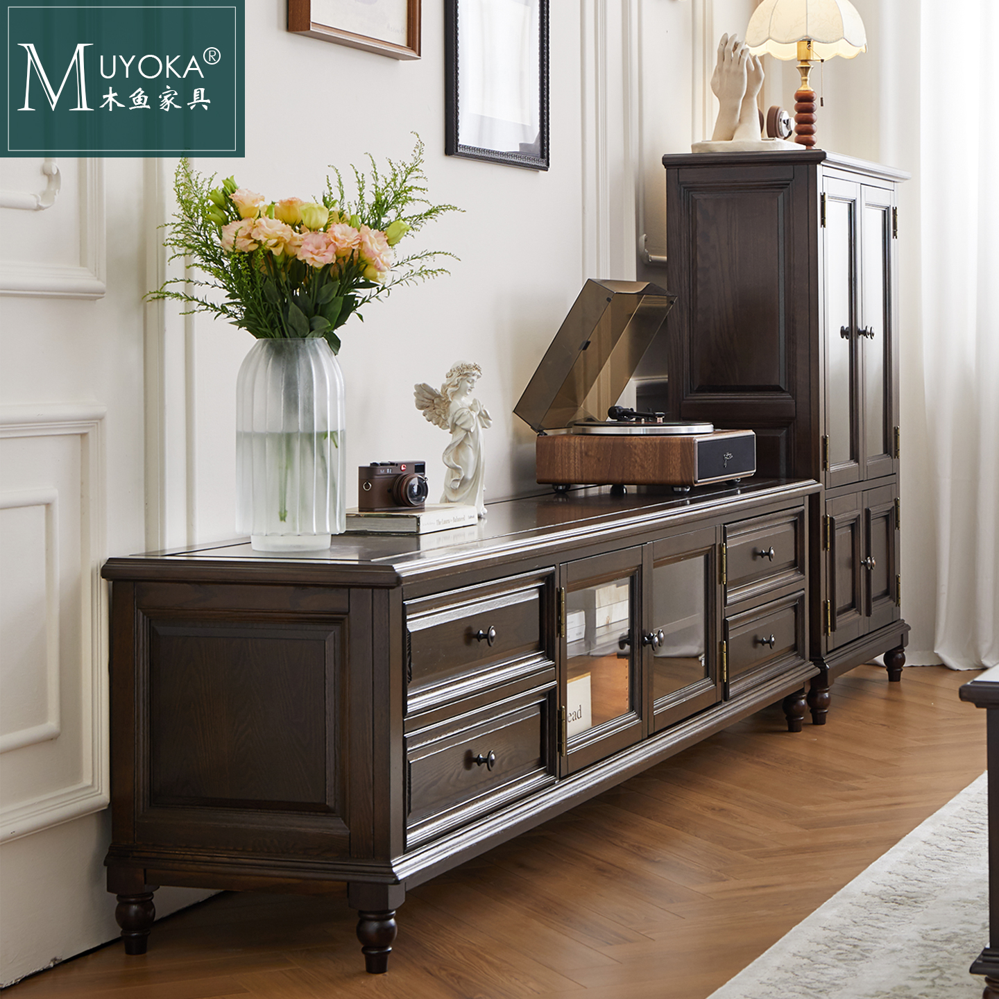 木鱼家具纯原木FAS白蜡木美式复古法式全实木电视柜茶几地柜组合