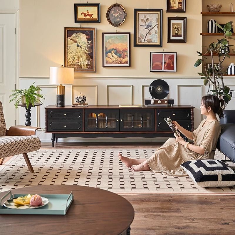 法式复古实木电视柜带抽屉小户型客厅家用中古风美式白蜡木落地柜