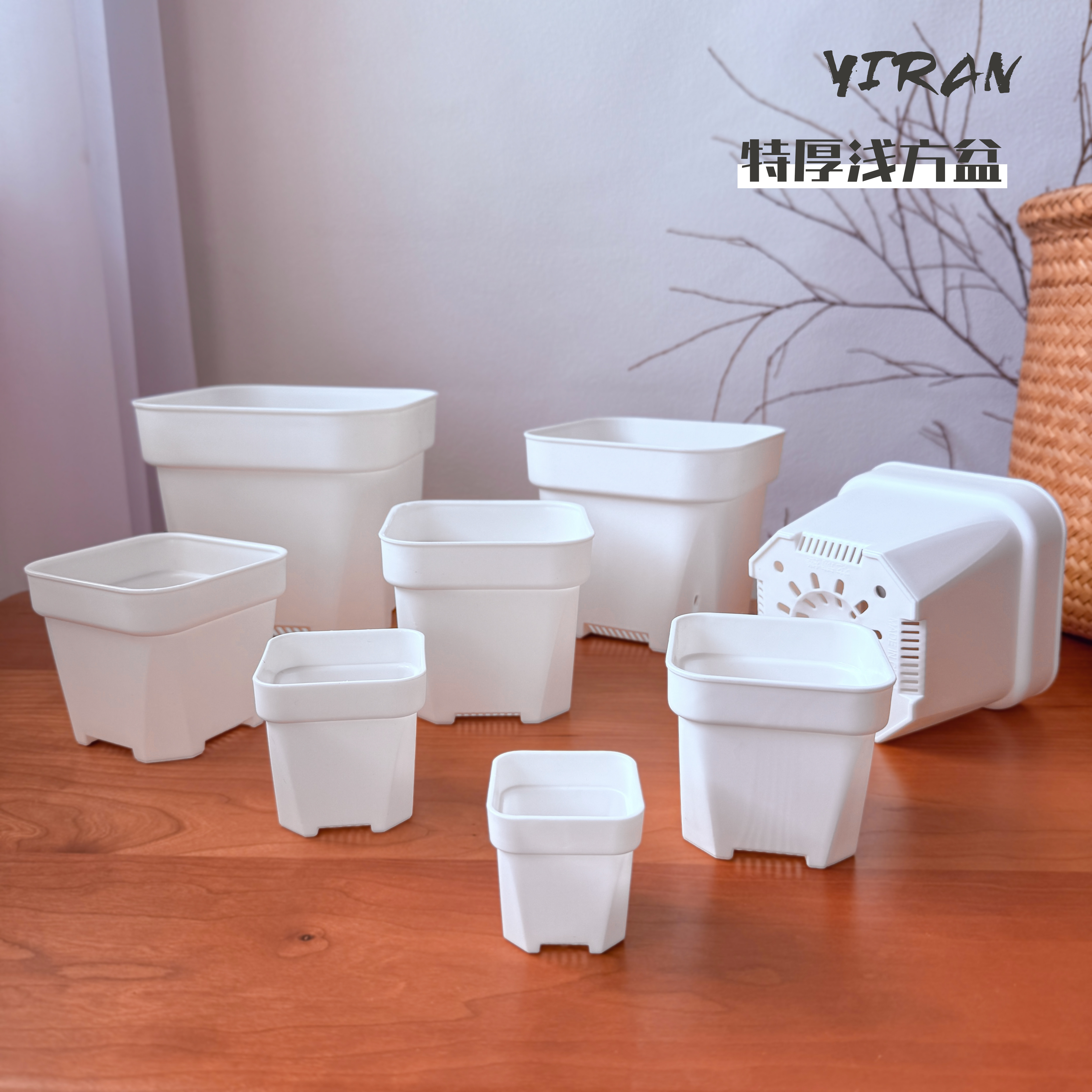 热卖升级特厚多肉花盆塑料矮方盆育苗省土迷你大小口径扦插黑白方