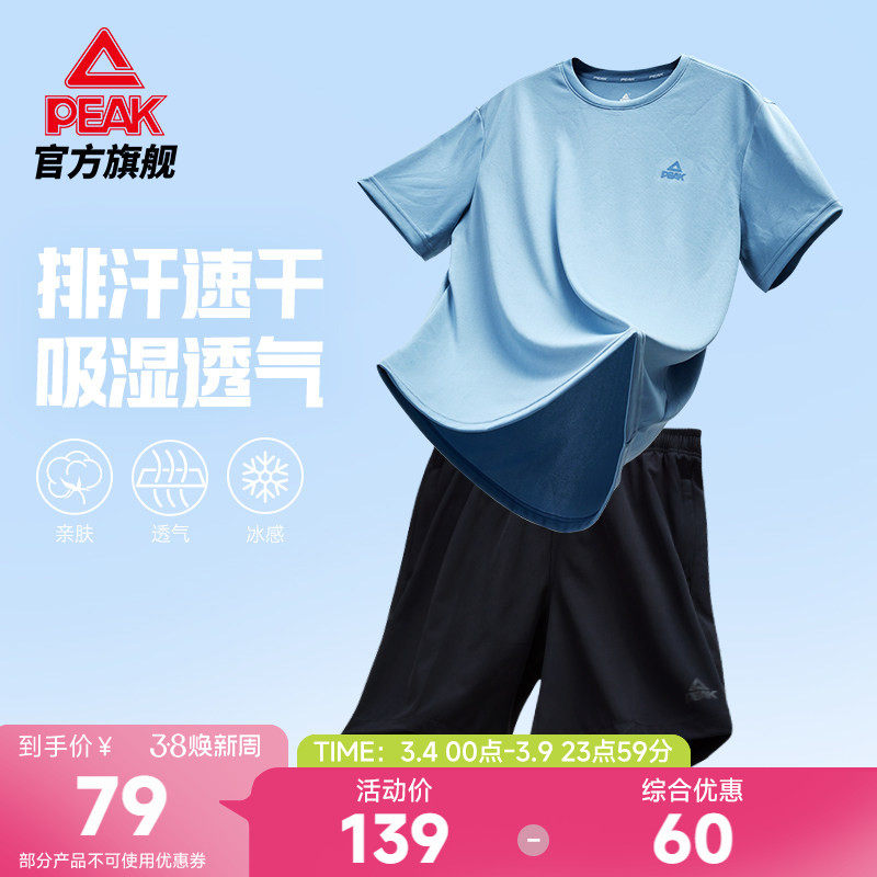 匹克速干套装男夏季新款官方透气运动服休闲上衣短袖短裤训练跑步