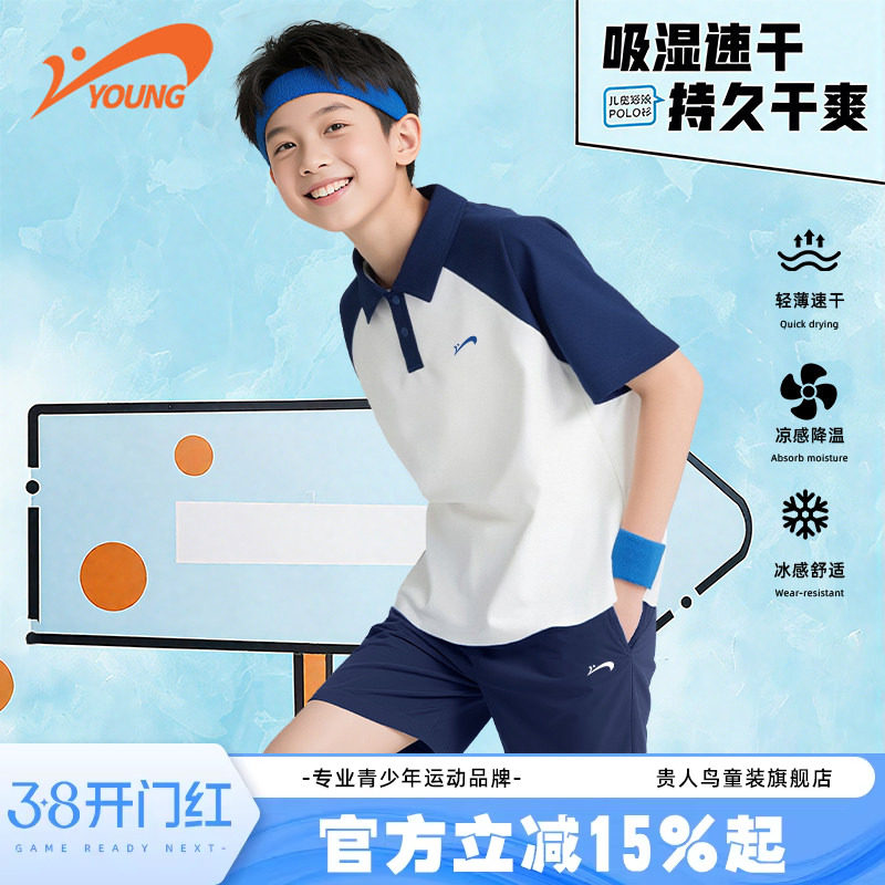 贵人鸟童装男童短袖t恤polo衫大童夏季上衣运动套装儿童速干衣服