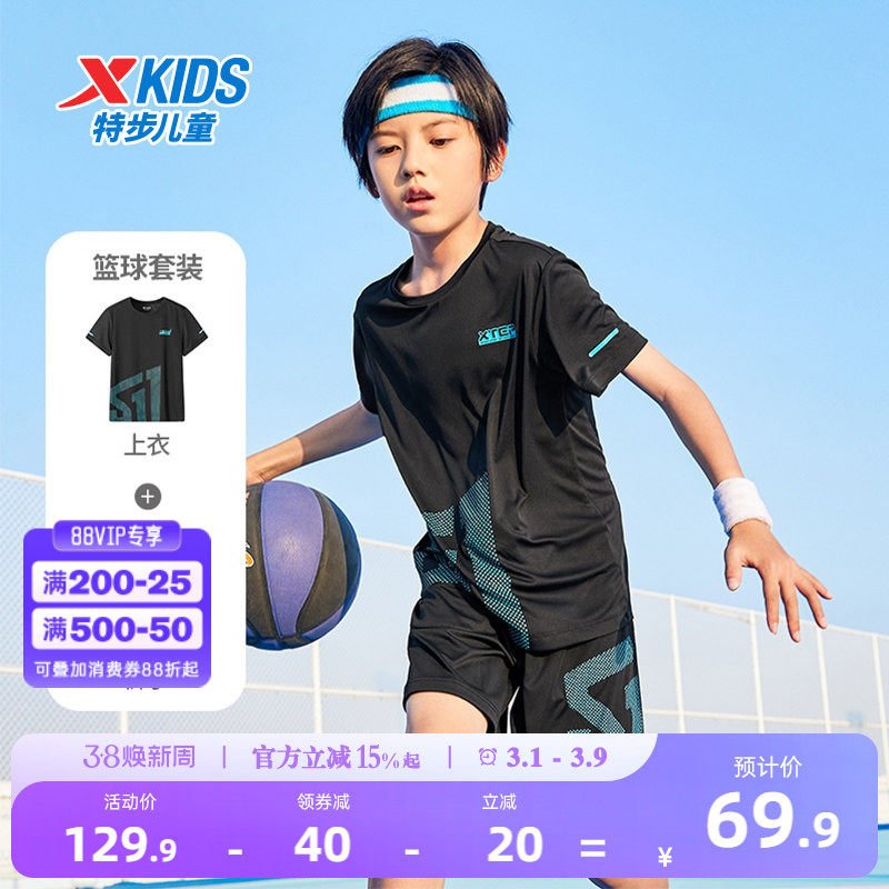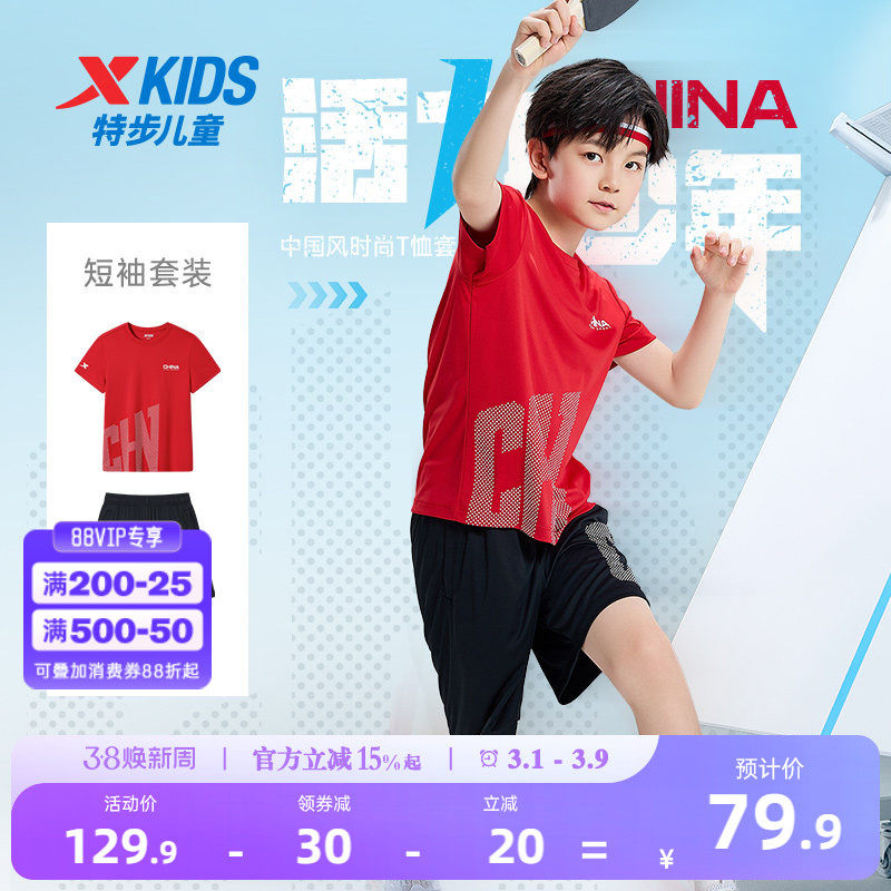 特步童装儿童短袖套装2026夏季男童夏装速干T恤短裤运动服两件套