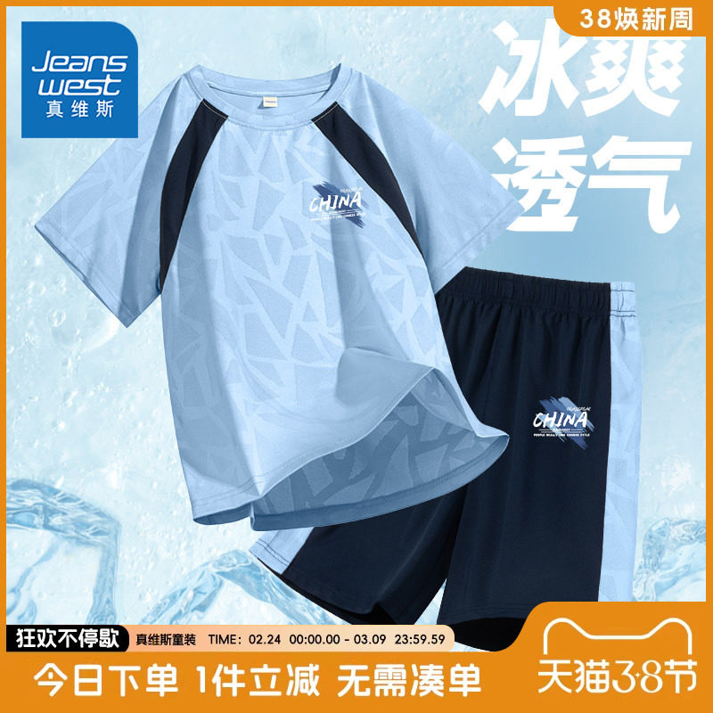 真维斯童装男童夏套装儿童夏季青少年户外运动服大童速干短袖t恤