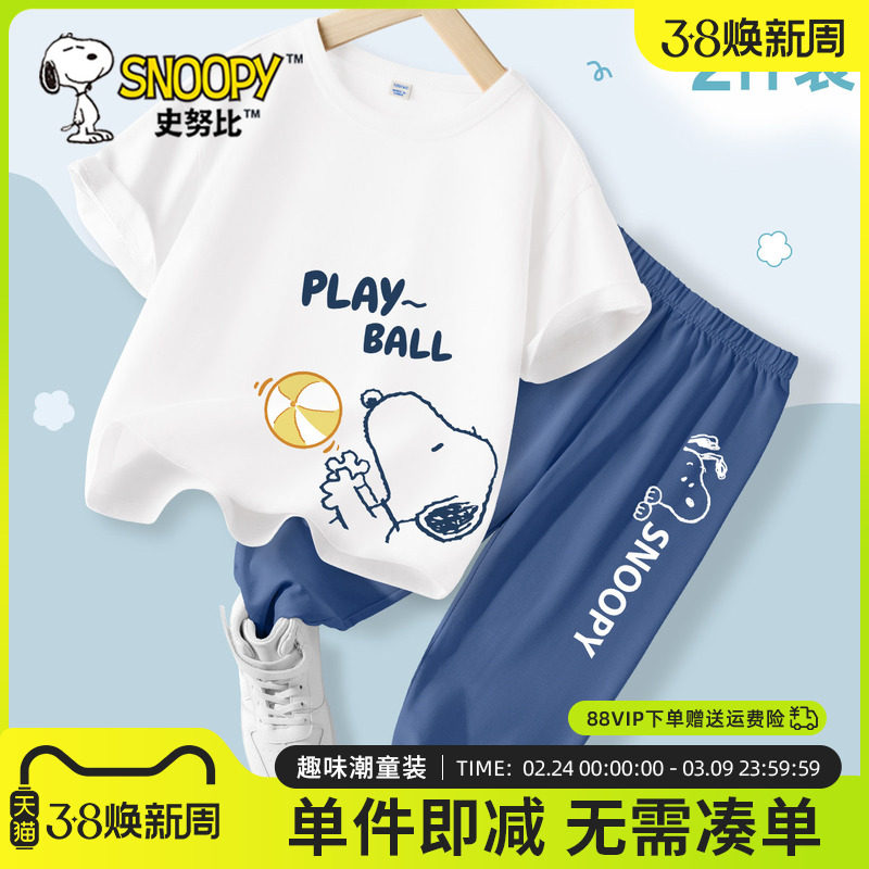 史努比男童套装夏2026新款男孩冰丝防蚊裤夏季短袖t恤儿童运动服