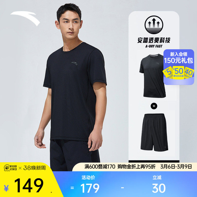 安踏速干套装丨运动短袖t恤短裤两件套男夏季吸汗透气跑步训练服
