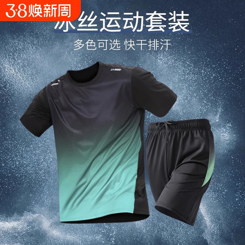 运动套装男新款羽毛球服冰丝速干衣短袖t恤夏季跑步短裤健身训练