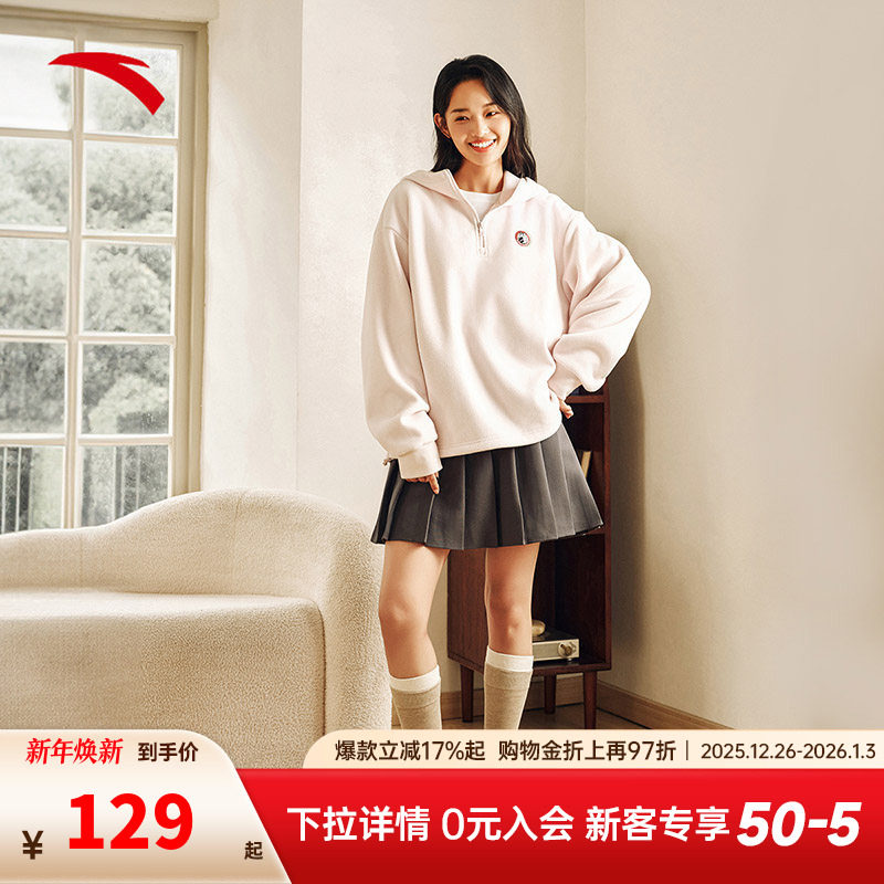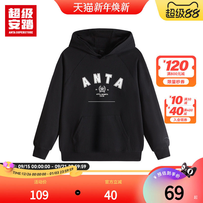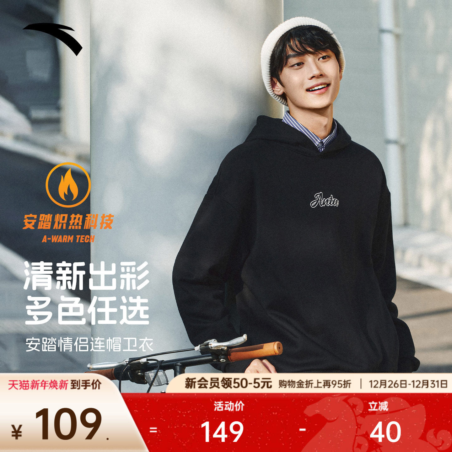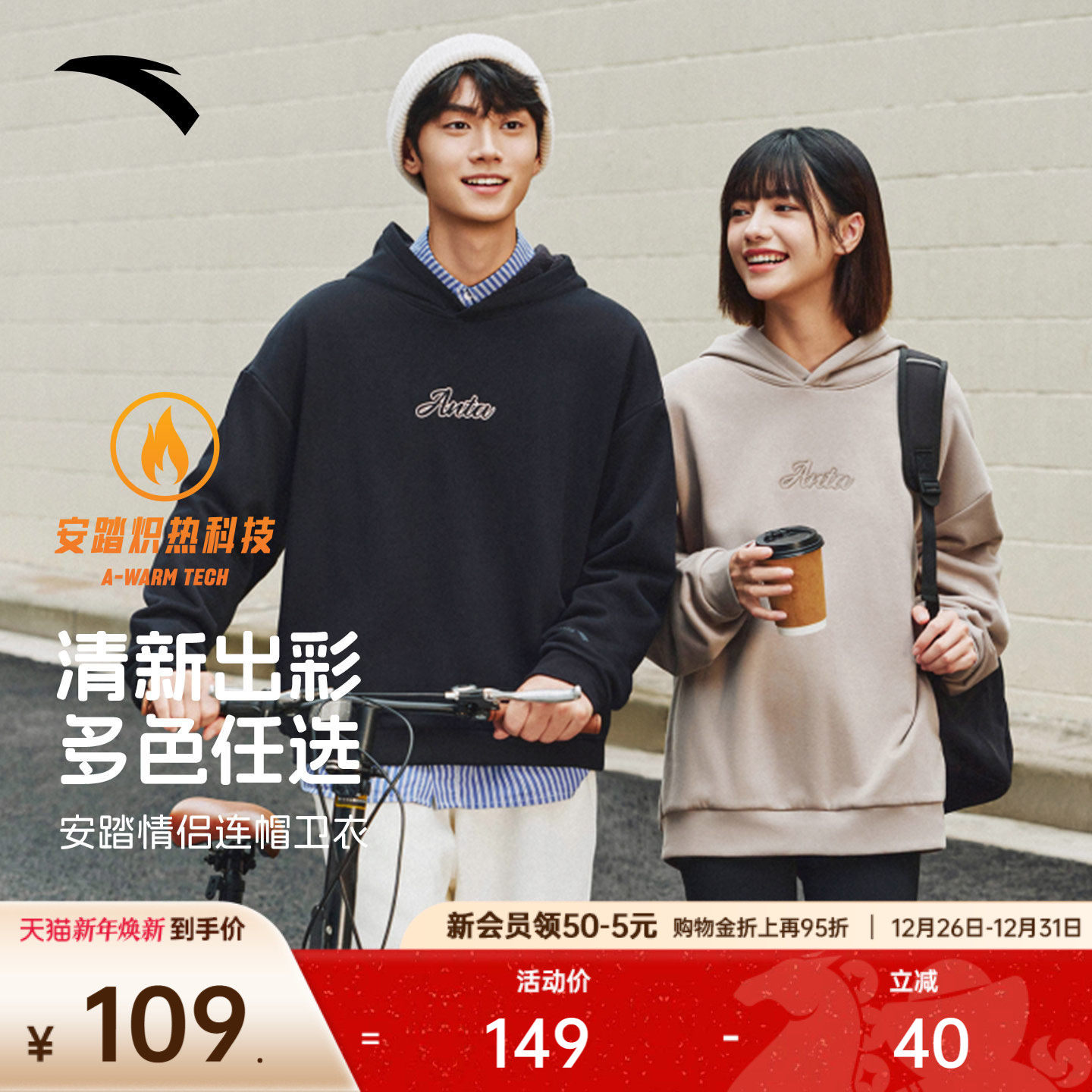 安踏情侣款连帽卫衣2025冬季休闲男女同款百搭套头衫长袖针织上衣