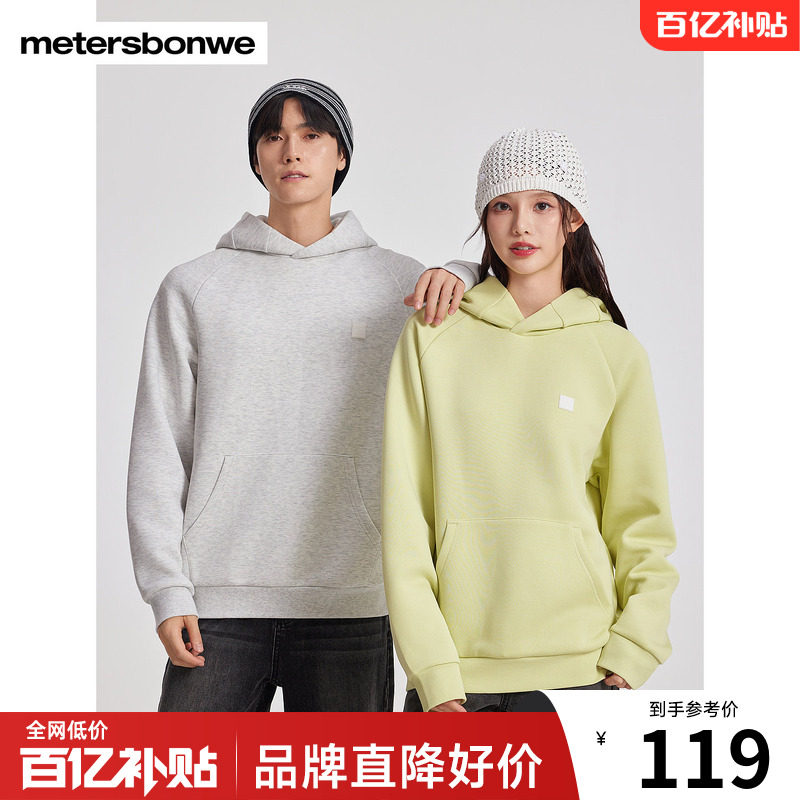 美特斯邦威连帽卫衣男女同款秋冬纯色百搭休闲美式潮流针织套头衫
