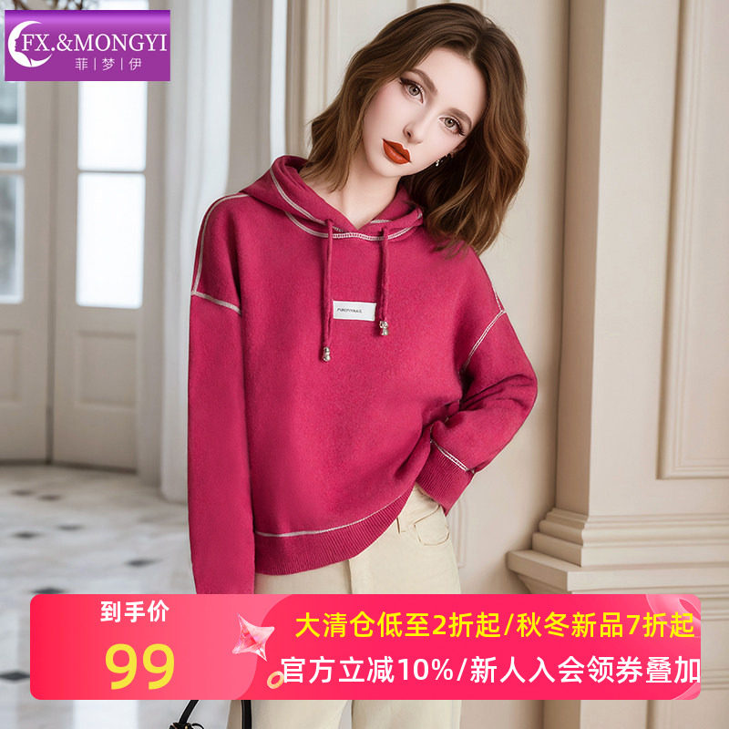菲梦伊含羊毛连帽套头毛衣女冬季时尚休闲宽松显瘦卫衣针织衫上衣