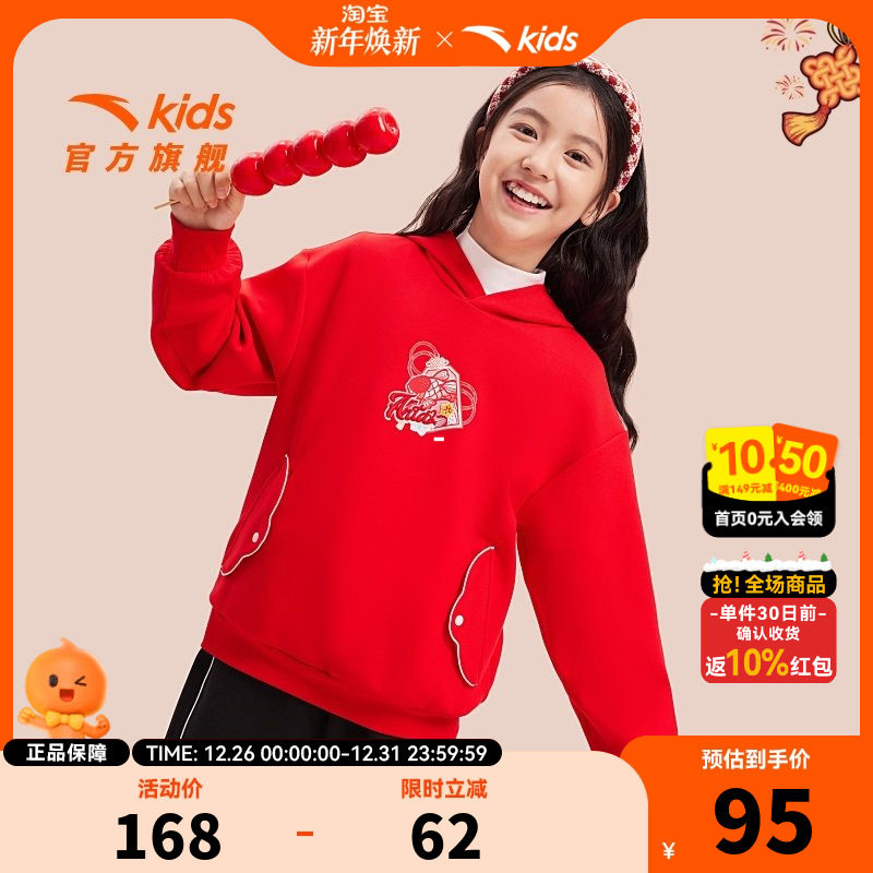 安踏儿童女大童针织连帽套头衫2025春季新款舒适中大童新款款卫衣