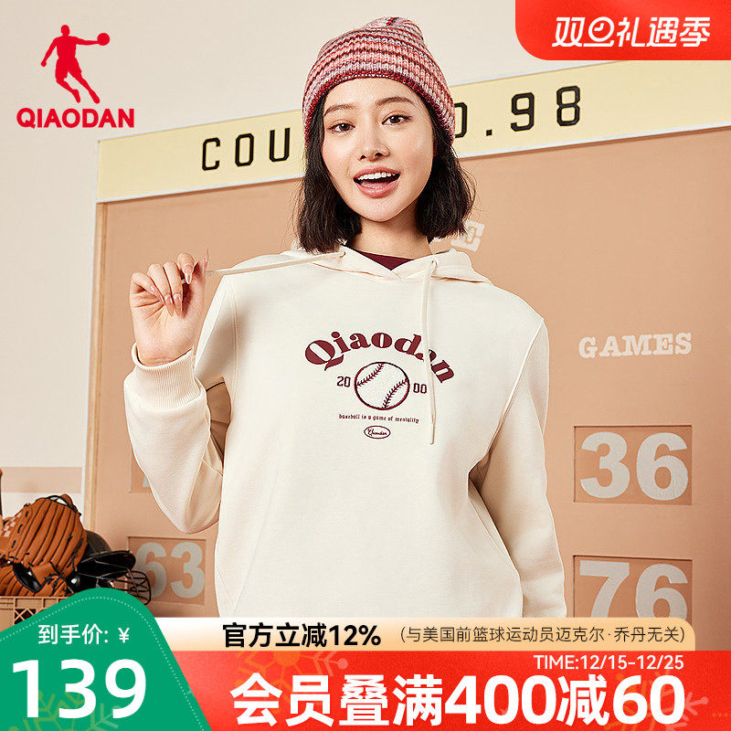 中国乔丹运动卫衣女士2025秋冬连帽套头潮流百搭修身针织上衣