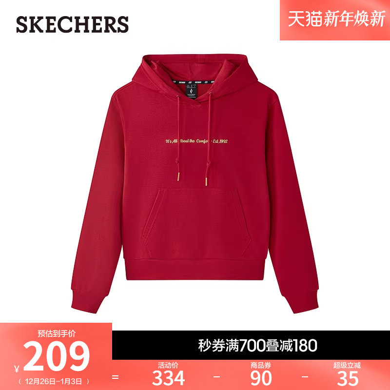 斯凯奇女针织套头连帽卫衣宽松显瘦经典百搭运动外套舒适长袖上衣