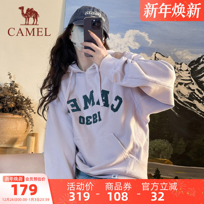 骆驼运动连帽卫衣男女同款春季美式套头长袖情侣宽松针织休闲卫衣