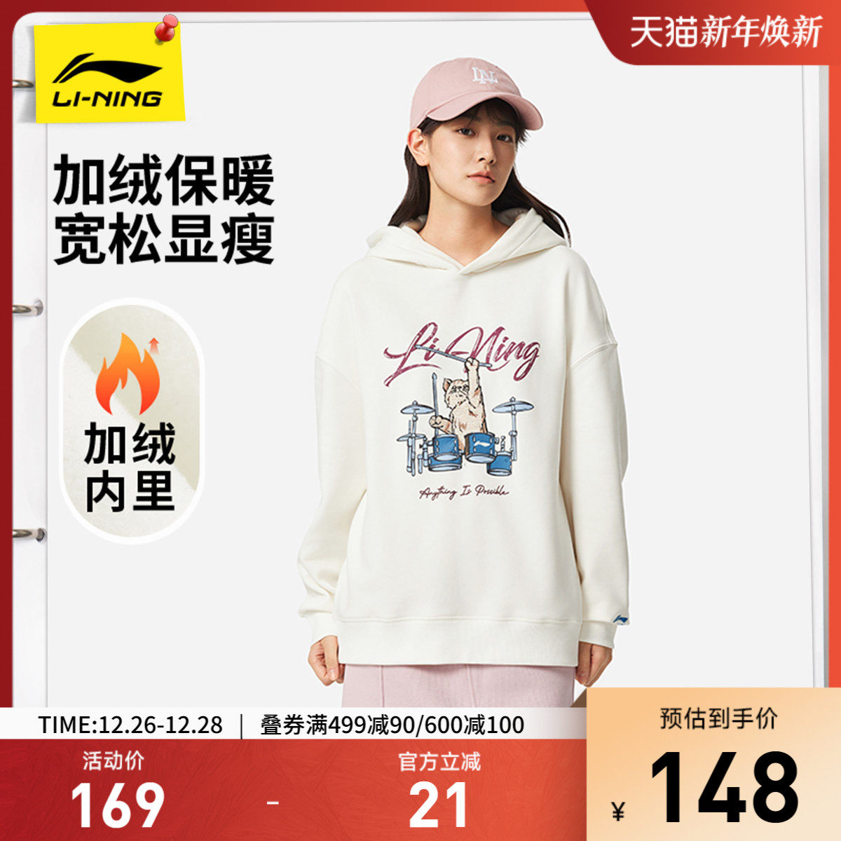 李宁连帽卫衣萌宠长袖女士新款秋冬加绒保暖百搭套头衫针织运动服