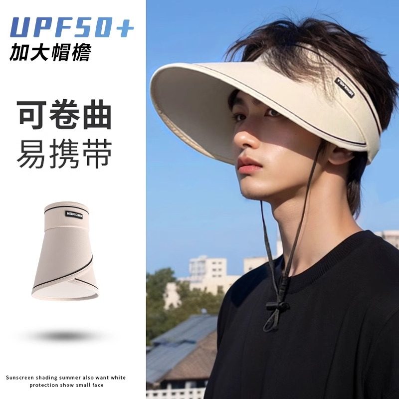 防晒帽男款2025新款夏季防紫外线遮阳帽子男士空顶大帽檐太阳帽