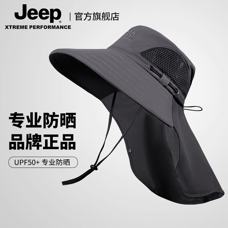 jeep吉普防晒帽男士夏季户外钓鱼登山帽大帽檐防紫外线遮阳渔夫帽