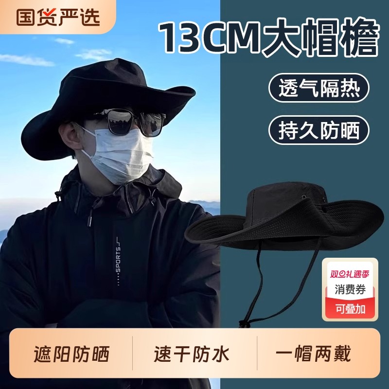 防晒帽男士夏季遮阳帽户外登山钓鱼大檐遮脸防紫外线渔夫太阳帽子
