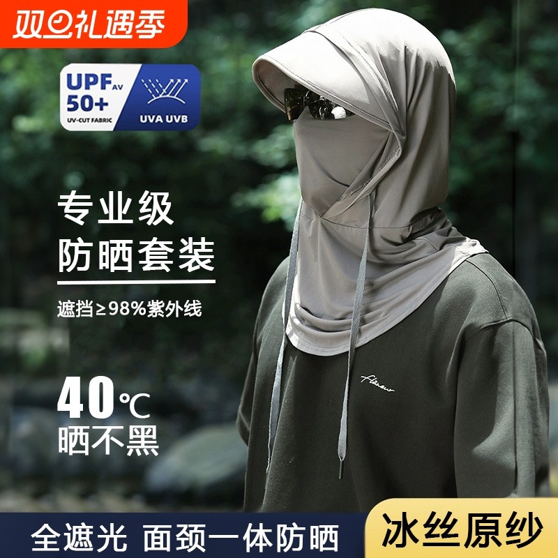 防晒帽男士2025新款夏骑行防紫外线遮阳帽子面罩护颈一体冰丝头套