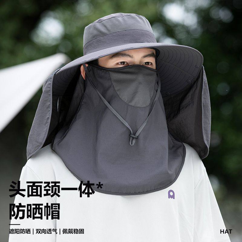 防晒帽男士夏季户外钓鱼渔夫帽防紫外线大帽檐太阳帽护脖遮阳帽子