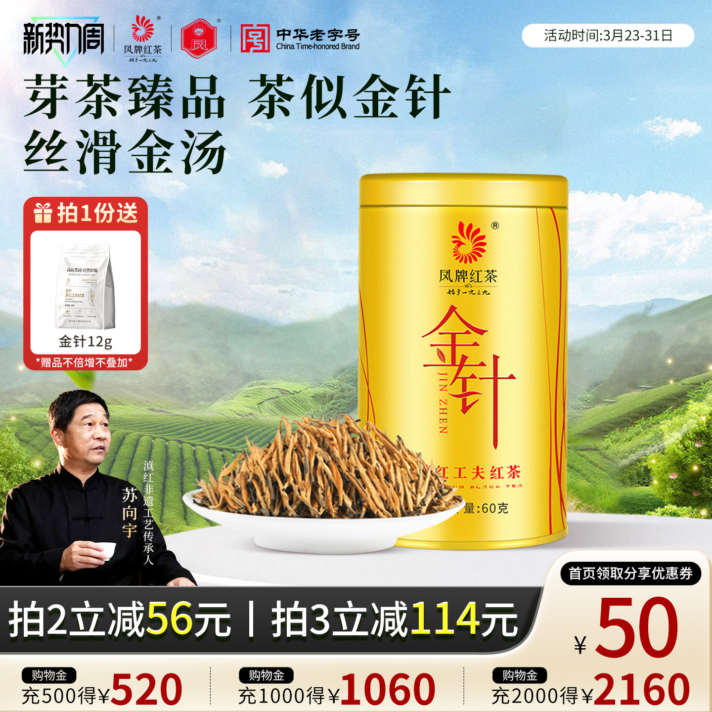 凤牌红茶云南凤庆滇红茶特级金针金芽茶叶罐装60g大金针蜜香型茶