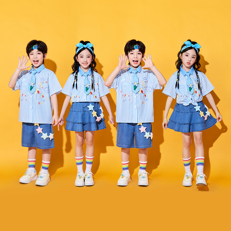 六一儿童啦啦队演出服装幼儿园合唱运动会小学生牛仔毕业表演班服