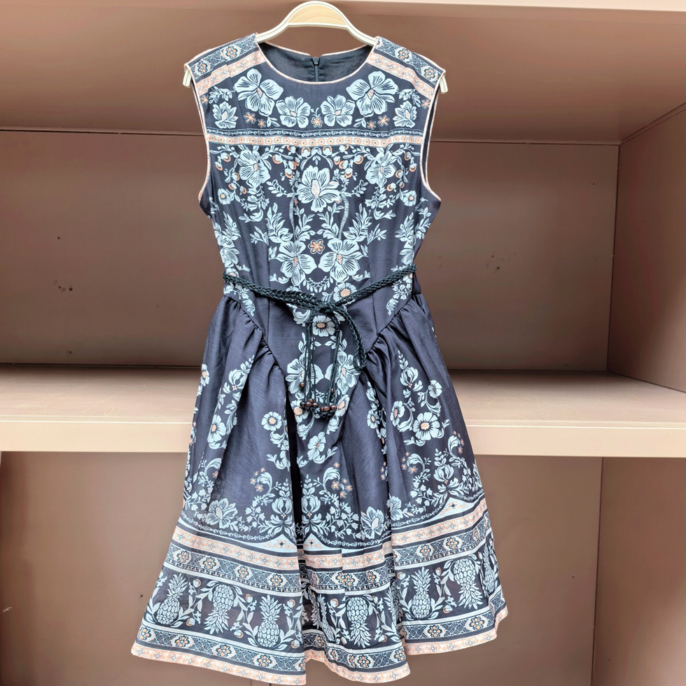 欧美大牌女装2022春夏新款时尚印花气质收腰无袖连衣裙a字裙大码