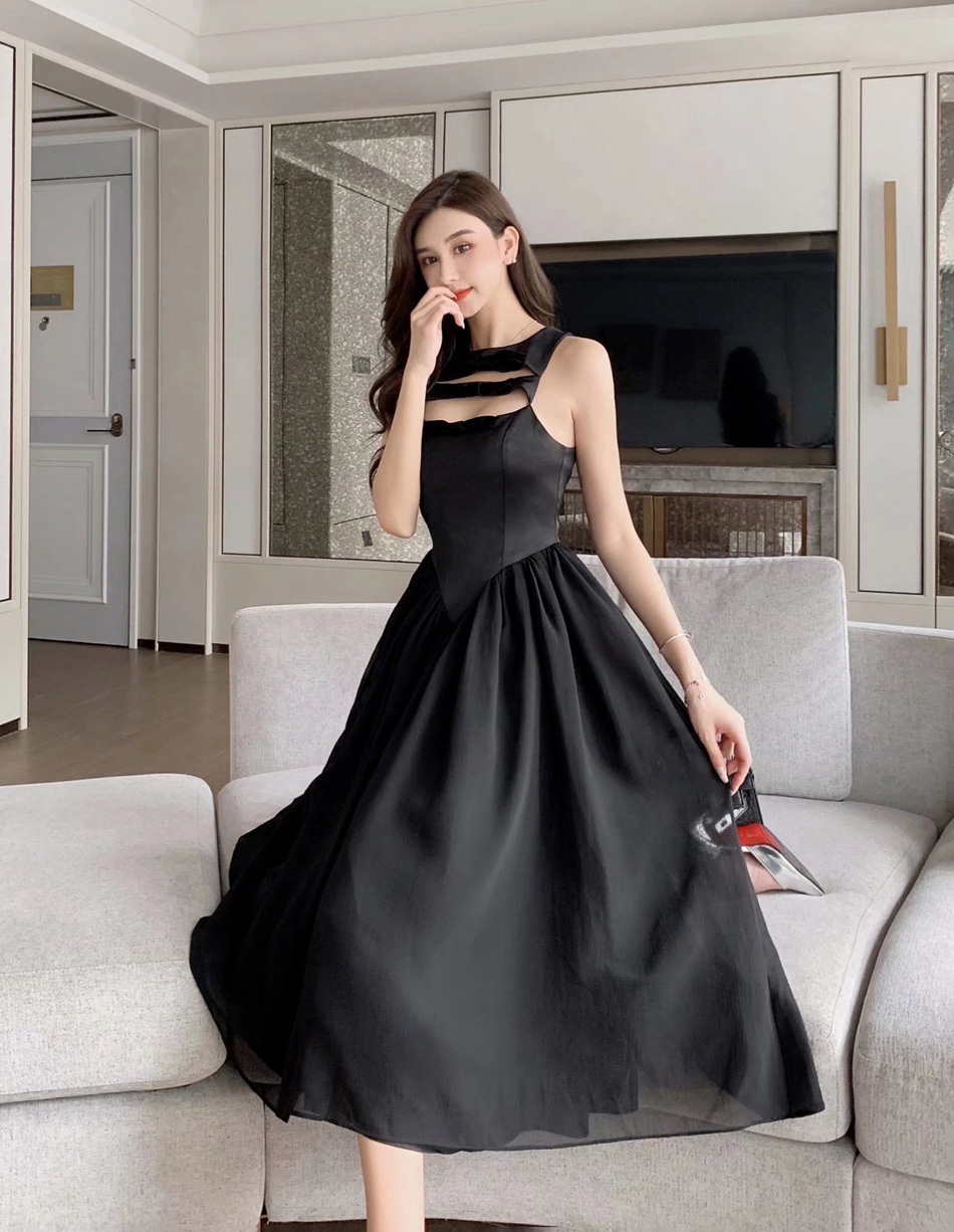 棕媛同款泰星小水简约连衣裙2025新款无袖挂脖连衣裙高端精致短裙