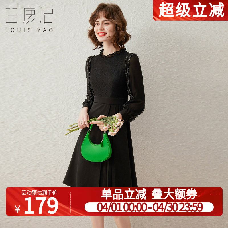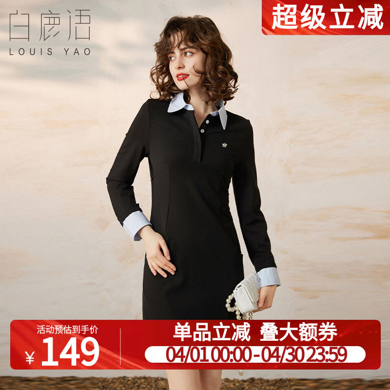 白鹿语法式翻领长袖气质连衣裙女25春款复古学院千金风黑色短裙子
